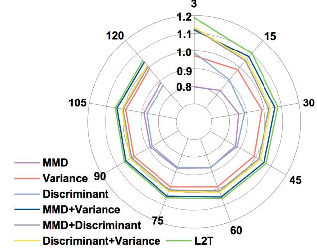 图 3:在 6 个源域和目标域对之间的分类准确度。