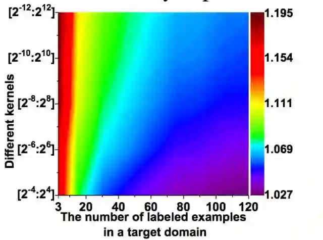图 6:反射函数 f 中不同数量的核和目标域标注样本数量的变化趋势
