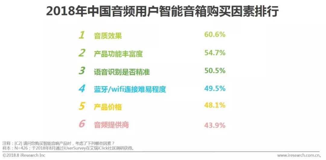 智能音箱用户最为看重语音功能与音质效果