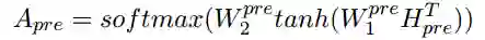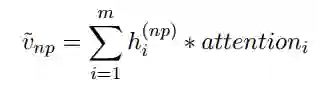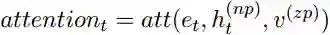 我们有了零代词的表示,利用其对一个后选先行语的每个词进行注意力计算。特别的,注意力的计算公式为