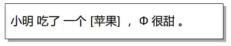 中文的零指代,是中文中存在的一种特殊的现象。它可以被视为是指代现象中的一种特殊情况。具体而言,在中文等代词缺失(pro-dropped)的语言中,读者能够根据上下文的关系推断出来的部分经常被省略,被省略的部分在句子中又承担相应的句法成分,并且回指前文中的某个语言单位。被省略掉的部分称为零指代项或者零代词,被指向的语言单位被称为先行语。图1是一个中文零指代现象的示例。在这里,“Φ”表示一个零代词,它的先行语为"苹果''。