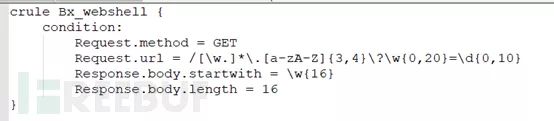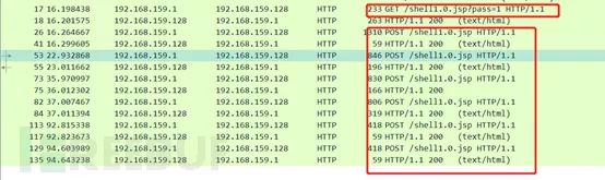 通过比较发现,冰蝎在连接之前会发送一个GET请求,服务端如果正常会响应一个16位的字符串。其实冰蝎每一次连接请求都会向服务端发送一次GET请求获取16位的密钥,这16位的字符串就是密钥,在客户端和服务端的通信过程中使用密钥进行加密以达到免杀的目的,因此只要我们能在流量中发现这样特征的流量,便可以发现隐藏在流量中的冰蝎webshell。