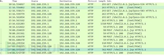 冰蝎v2.0.1连接成功,抓取到流量包如下: