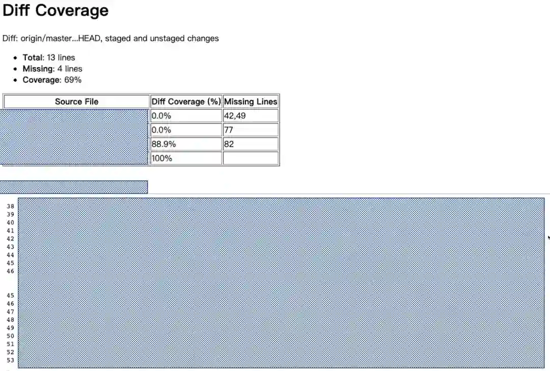 #行增量覆盖率gocov convert $COVER_FILE | gocov-xml > $COVER_DIR/coverage.xmldiff-cover $COVER_DIR/coverage.xml --compare-branch=origin/master --html-report $COVER_DIR/report.html > $COVER_DIR/diff.outtmp=`cat $COVER_DIR/diff.out | grep "Total:" | cut -d ':' -f2`if [ -n "$tmp" ]then echo "CODE_COVERAGE_NAME_UPDATELINES : 行增量" CODE_COVERAGE_UPDATE_LINES_TOTAL=`cat $COVER_DIR/diff.out | grep "Total:" | cut -d':' -f2 | grep -o -E '[0-9]+'` miss=`cat $COVER_DIR/diff.out | grep "Missing:" | cut -d ':' -f2 | grep -o -E '[0-9]+'` CODE_COVERAGE_UPDATE_LINES_COVER=$(( CODE_COVERAGE_UPDATE_LINES_TOTAL - miss))ficp $COVER_DIR/report.html /${your path}/res_unit/${PREFIX}update.html