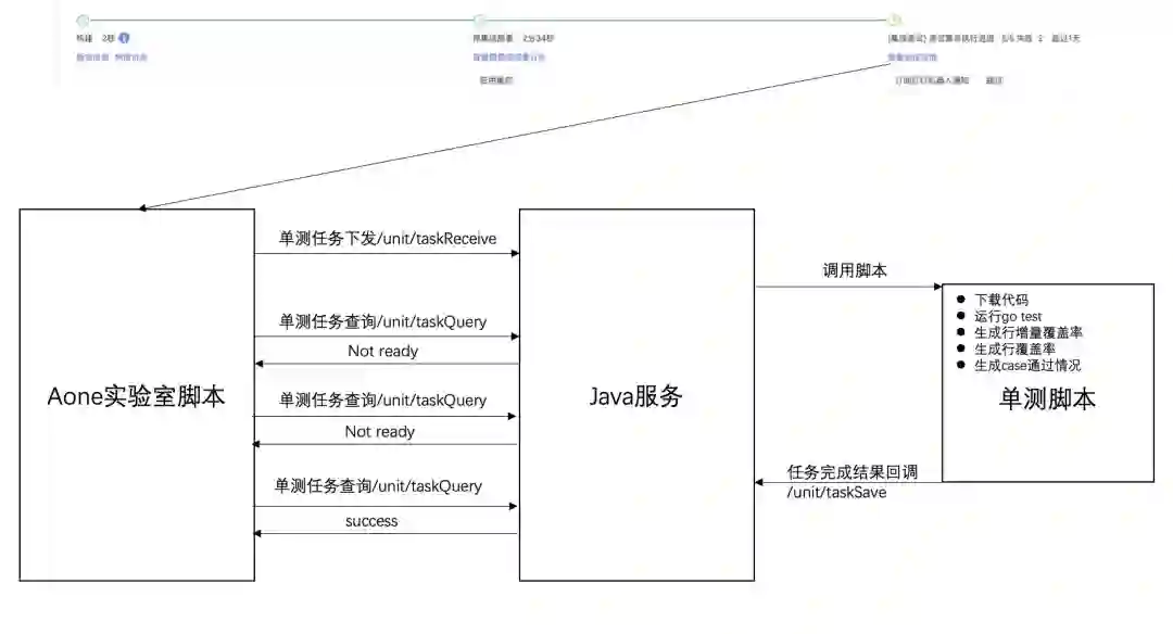 由于单测脚本运行时间会比较长,所以/unit/taskReceive接口会超时。在单测脚本正在运行的时候,单测实验室的脚本会一直调用/unit/taskQuery接口,查询此次单测任务的状态,直到返回正确结果为止。