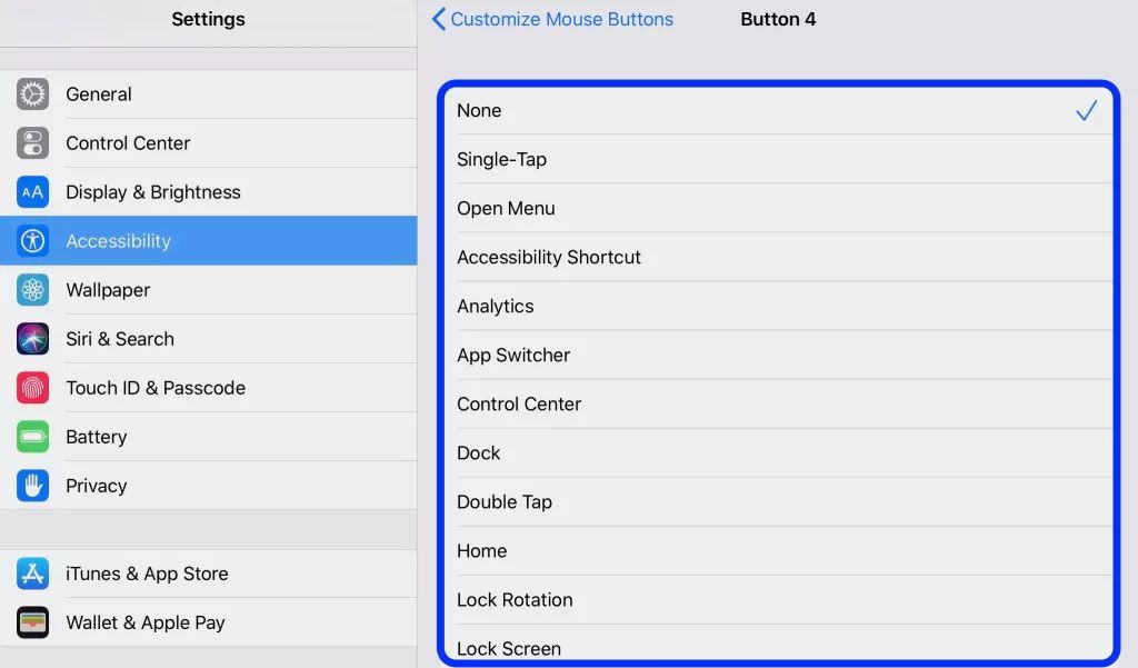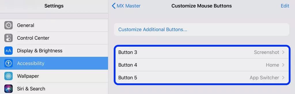 iPadOS 支持多个快捷键按钮,可根据你的鼠标具体情况定制;