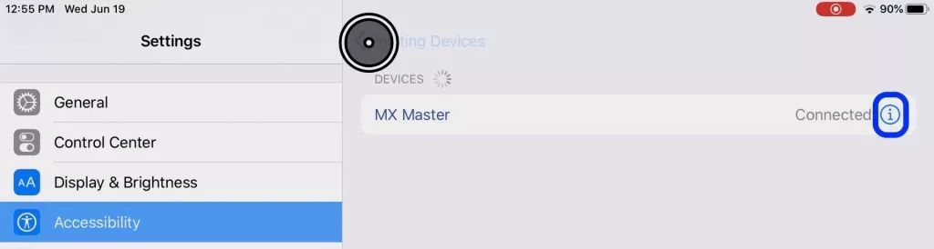 开启辅助触控并配对鼠标后,iPad 上就会出现类似「小白点」的圆形鼠标指针;