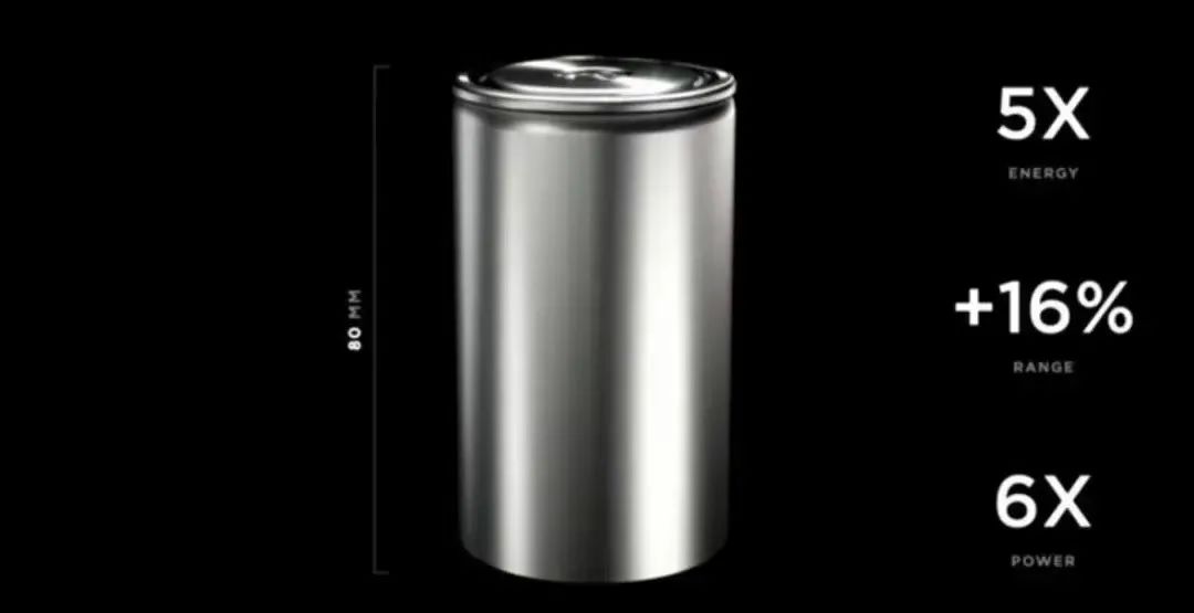 4680电池最早在2020年9月特斯拉的“电池日”上亮相,彼时被特斯拉CEO埃隆·马斯克 (Elon Musk)称之为电池技术上“巨大的突破”。按照他的说法,4680电芯的单体能量提高5倍,整车续航里程增加16%,电力相比有极耳电池提升6倍,功率输出提升6倍。