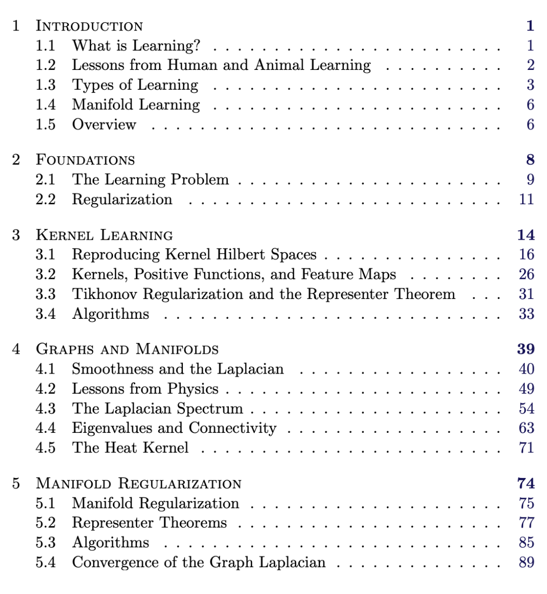该论文结合三个数学领域来介绍流形学习:统计学习、谱图理论和微分几何,并在最后一章中介绍了