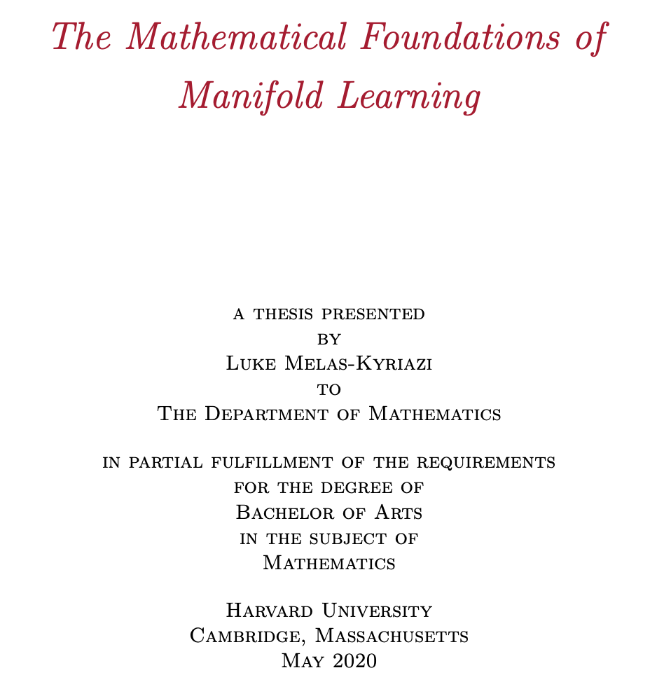 近日,哈佛大学数学系毕业生、现牛津大学博士 Luke Melas-Kyriazi 发布其本科毕业论文,结合统计学习、谱图理论和微分几何三个数学领域介绍流形学习。
