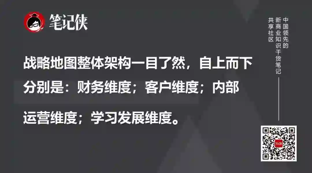 战略地图整体架构一目了然,自上而下分别是: