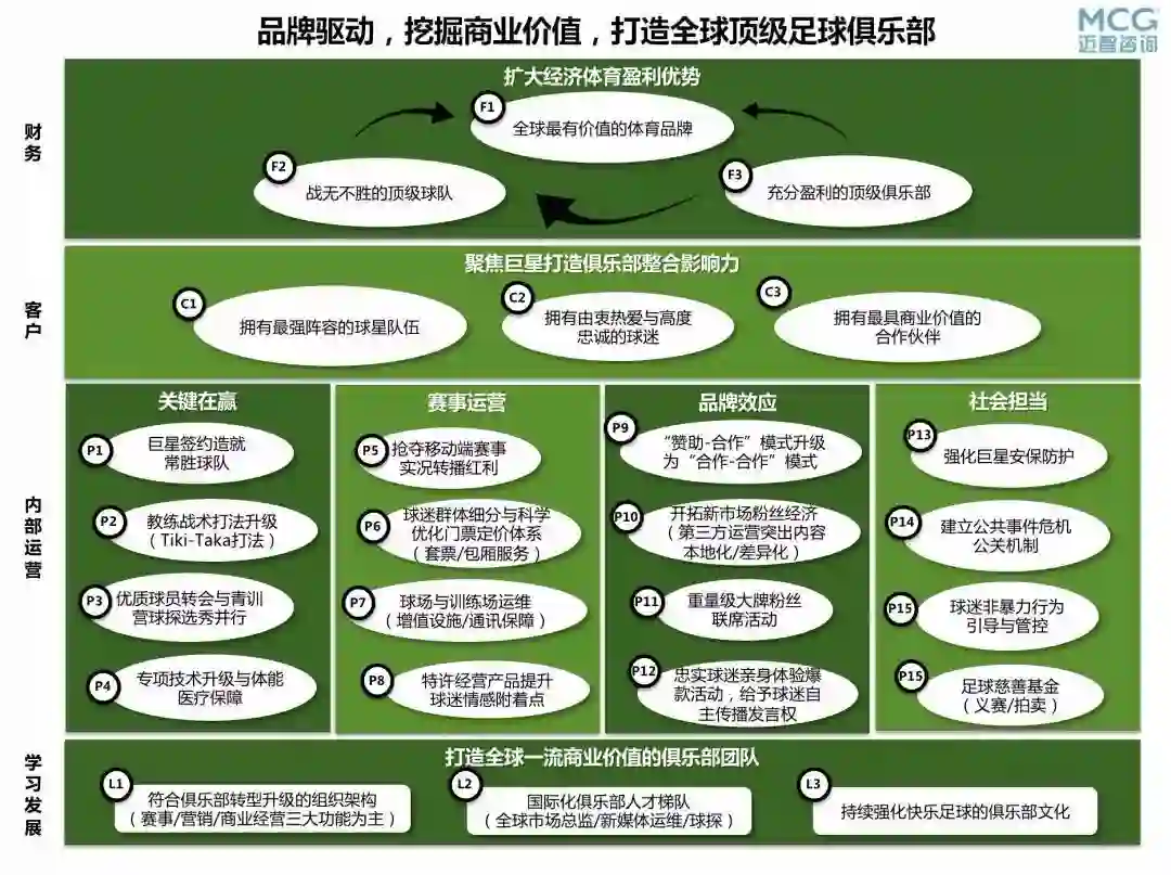 上图是我们做的一家职业足球俱乐部的战略地图,让我们来逐一讲解战略地图是怎样帮助组织从战略制定到战略共识的。