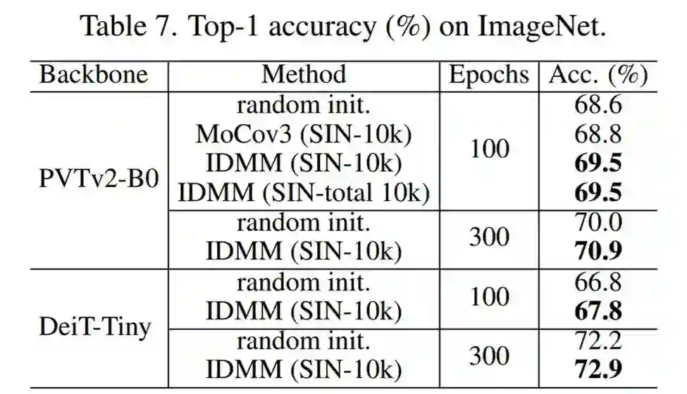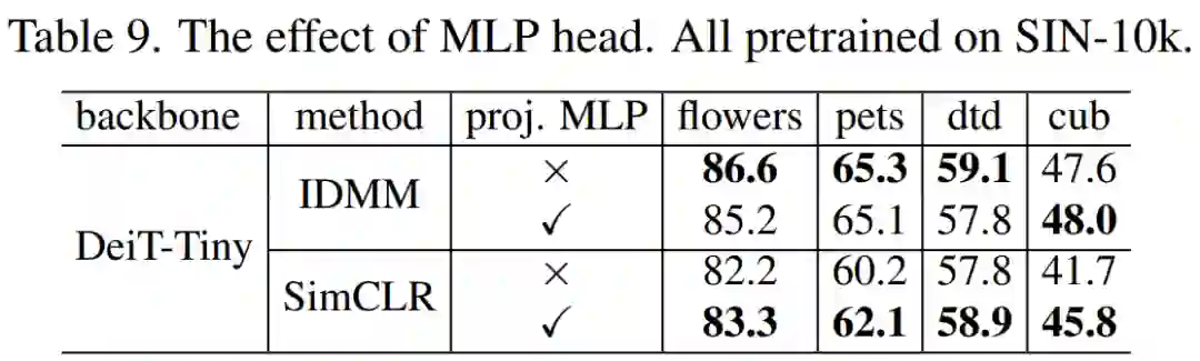 该工作中,研究者对于 IDMM 的局限性进行了探讨,在像 DeiT 这样的架构上从头开始训练这些小型数据集时,模型仍有改进的空间。还有哪些属性对于小型数据集预训练起到关键作用?这还有待未来的进一步研究。