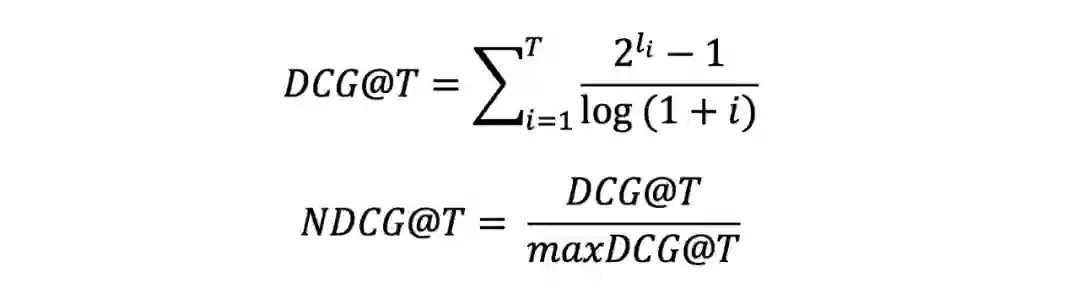 首先我们那需要先计算 DCG,我们有 T 个需要排序的候选,其中
