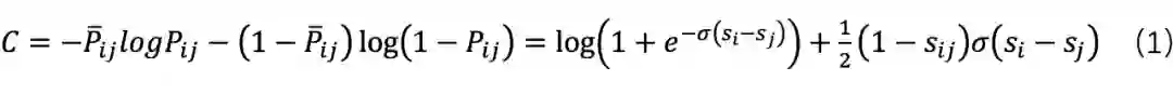 所以 RankNet 的训练数据不是输入一个一个的 list,而是输入一个一个的 pair,比如文章(i , j)。我们也知道 i 和 j 的 label。