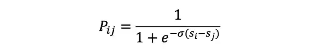 。我们建模的目标是一个概率,即模型认为候选 i 比候选 j 更相关的概率: