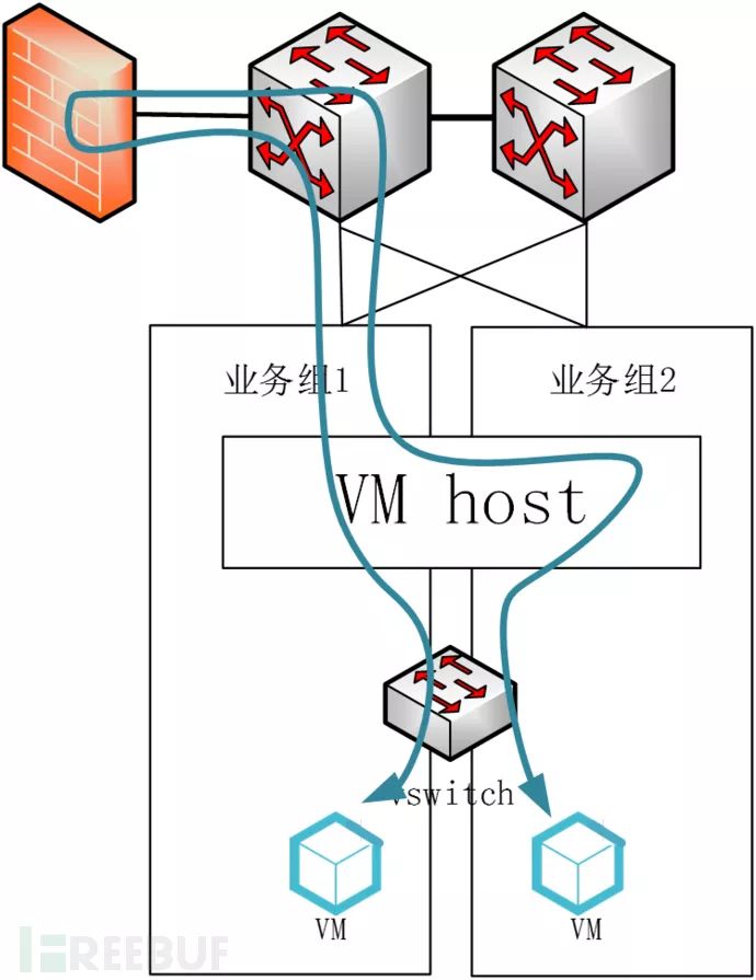 虚拟化数据中心根据底层架构的不同,基于VLAN/VPC的内部隔离是两种比较常见的方式。很多企业先根据部门、业务系统将数据中心逻辑上划分成不同安全域,并通过VLAN/VPC的方式进行隔离,再将虚拟机部署在各VLAN/VPC中。由于VLAN/VPC均为二层隔离,如果各组之间需要通信,则需要通过三层设备(三层交换、防火墙)进行。两种方式主要都是延续了传统数据中心安全管理的思维,分堆、分隔、访问控制。