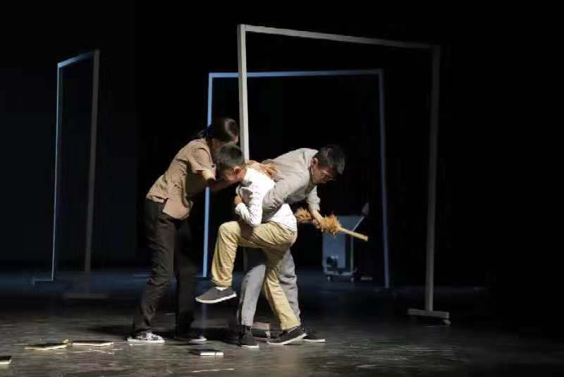 我们就是一直在这样的条件下排剧、演剧的,尽管太简陋了连我们自己也经常自嘲,但是大家凑在一起排剧的时候每个人都是很开心的,支撑我们的真的就是对于戏剧那种非常赤诚的热爱。而且我们六月份演出,教室连电风扇都不能开,不然挡墙的泡沫板子会飞起来,所有人都满头大汗。