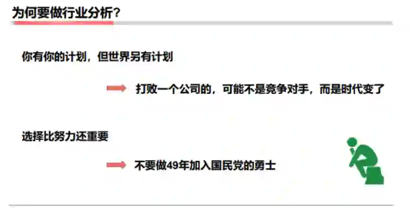 行业分析有两个常见的应用场景:第一是是否该进入一个新市场,第二是行业不断变化,该如何应对。