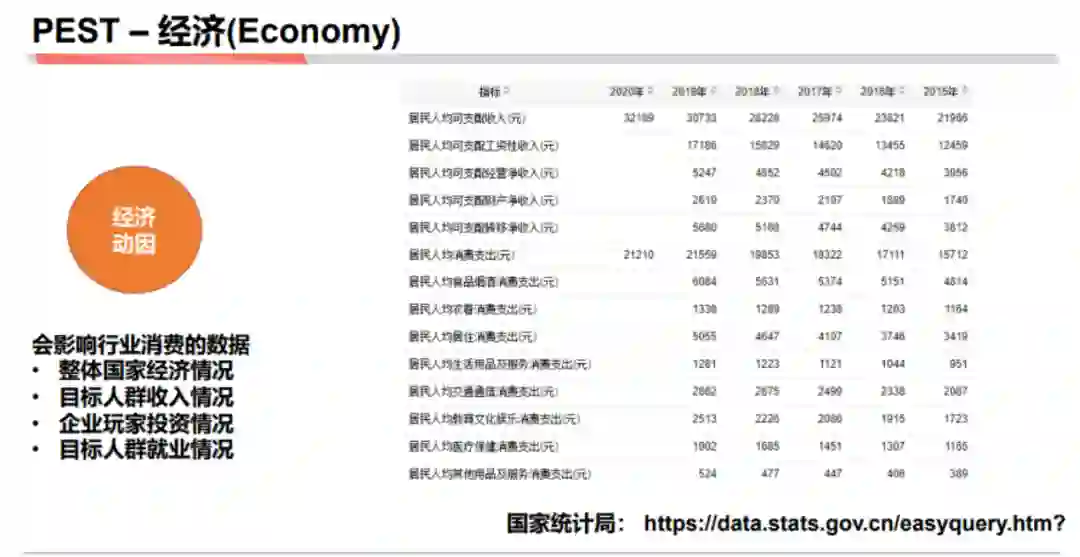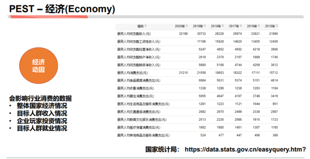 还是以医美行业举例,如果目标消费者的人均可支配收入逐年上升,就代表这些人有更多的闲钱可购买商品,如果你是机构,就对你相对利好,如果遭受疫情,就有可能导致人们失业,可支配收入下降,就有可能导致利空。