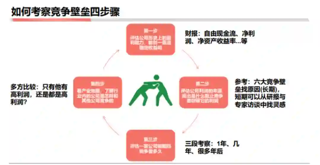 第二,评估该公司的利润来源,寻找竞争壁垒是哪一种,这时可以参考之前提到的六大竞争壁垒找灵感。