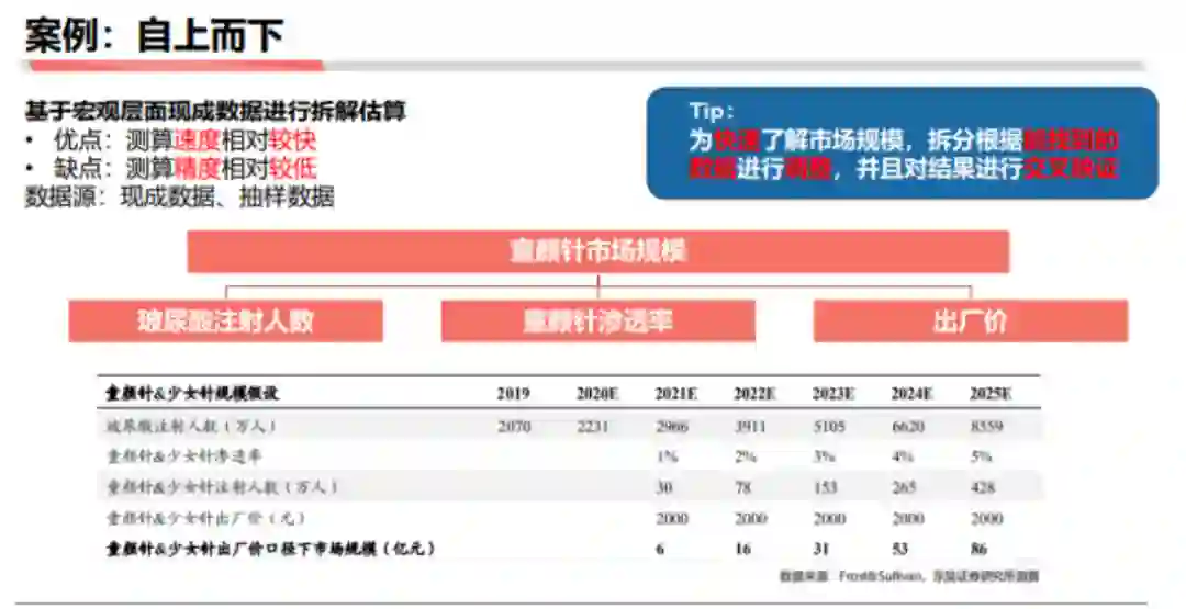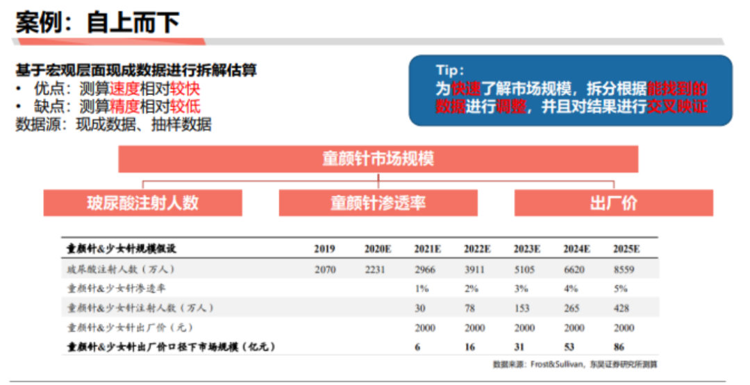 第一,自上而下,是基于宏观层面的数据进行拆解的估算。优点是速度比较快,但是精度比较低。