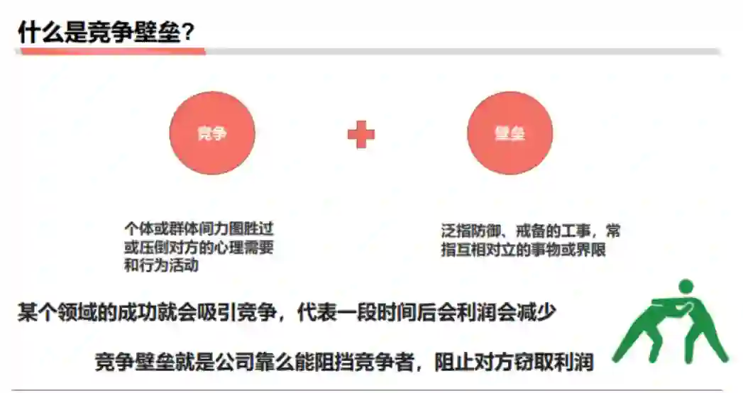 因此竞争壁垒就是先行者公司阻挡竞争者、防止它窃取利润的方式。