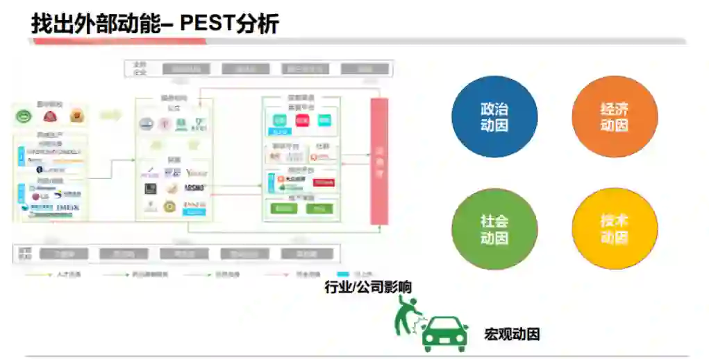 同时心中有这张全景图,能帮助你更好的思考PEST与波特五力对行业某类角色的影响(具体内容可以参考商业分析连载三)。