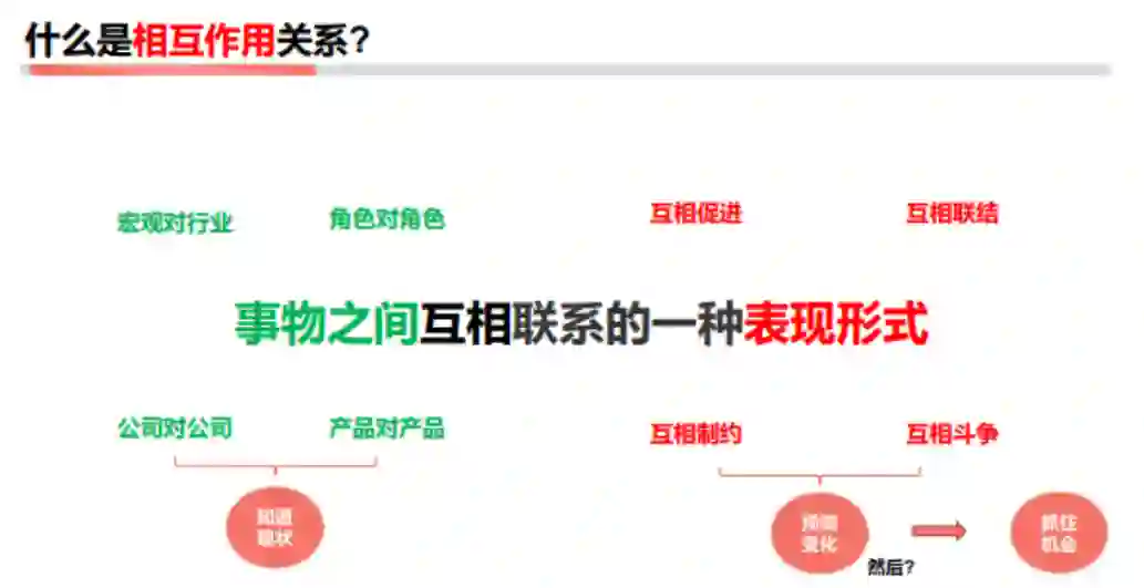 其中相互作用关系就是事物和事物之间互相联系的一种表现形式,对行业来说,事物之间可理解为四个部分: