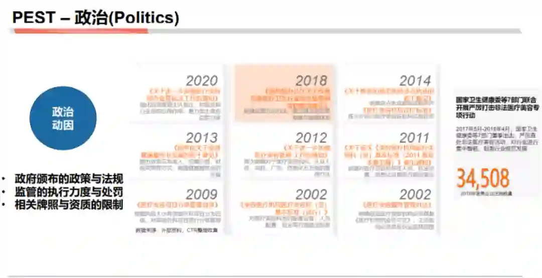 还是以医美行业举例,如果消费者对医美接受度逐年上升,对医美项目的安全性逐年信任增强,就会让你以更低的成本说服用户购买你的产品,如果你是机构,对你就是一种利好。