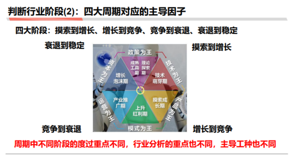 在分析动能与竞争壁垒时,我们需要在宏观层面观察整个行业或者该公司处于哪个周期。因为不同周期分析考察的重点不一样。