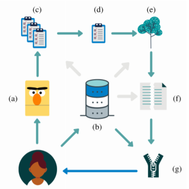 系统概述图如上所示。作为KnowlyBERT的输入,用户可以向系统提出以实体为中心的SPARQL查询。首先,查询语言模型(a);然后,对不完整的知识图谱进行查询,并获得结果(b);另外SPARQL查询被翻译成多种自然语言语句,这些语言语句在“关系模板生成”步骤中由语言模型完成;语言模型返回多个单词列表以及每个单词(c)的置信度值;然后将这些列表合并为一个列表(d),并根据知识图谱类型信息(e)使用我们的语义过滤步骤进行过滤。此外,执行阈值处理,削减不相关的结果(f);最后,将语言模型和知识图谱的结果合并(g)并返回给用户。