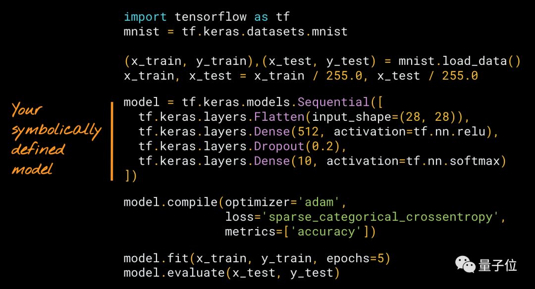 听起来很陌生?其实只要用过Keras,你应该也做过这样的事。这里有一个简单的示例,借助Keras Squential API,用符号来搭建模型: