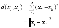 ②计算样本xi到其他类Cj所有样本的平均距离bij,j=1, 2 ,..., K,j≠k,称为样本xi与类别Cj的不相似度。
