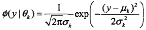 Ø(y|θk)是第k个高斯分布的概率密度,被称为第k个分模型,参数为θk=(μk, αk2)。