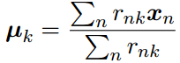 E步:在类中心μk已经确定的情况下,最优化rnk