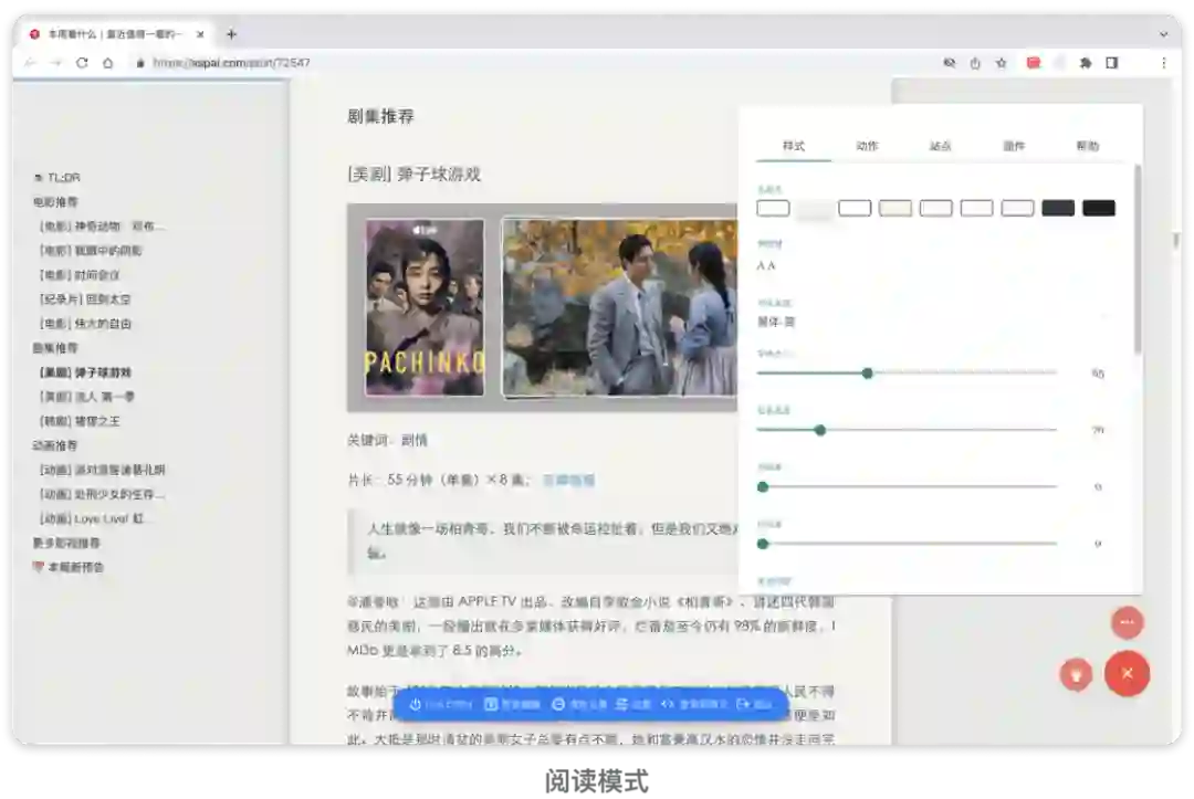 简悦则是为你解决这些烦恼的好帮手,经过多年的积累,它俨然从最初的「阅读模式」插件变成了具备完整知识管理能力的生产力工具。它可以开启阅读模式和插件,细致地调整阅读选项,提供了周全的标志工具,甚至还能通过开发接口,和其他知识管理工具进行联动。