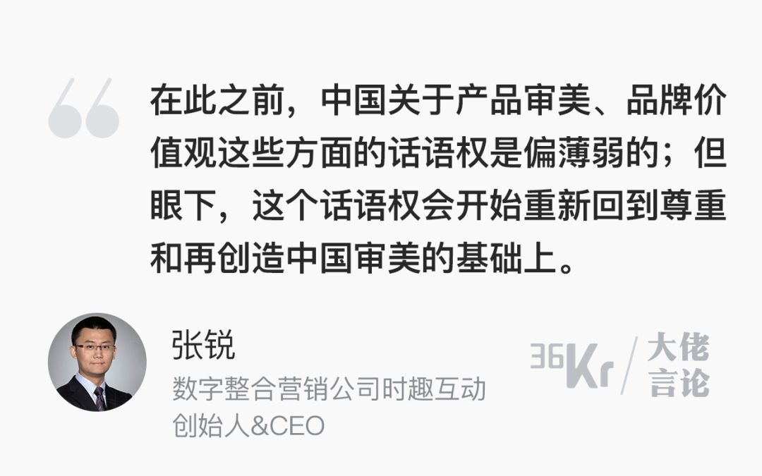“国潮国风的背后,反映的是中国年轻消费者的审美自信。品牌以后要想打动消费者,需要讲好专属于中国的品牌故事”,时趣CEO张锐这样表示。设计师平台ICY创始人也认同这样的观点:“现在的中国年轻人与国际交流愈加密切,他们更加自信,所以海外品牌不再被高看一眼。”