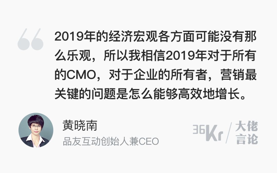 今年的广告营销行业,正面临着不确定性激增的窘境。穿过这片令人迷茫的“无人区”,谁也不知道前景是光明还是晦暗——于企业个体,或于行业整体,皆是如此。与往年一样,36氪通过与时趣互动、品友互动、AdMaster、madhouse等数字营销公司高层的深度访谈,照例总结了广告营销行业在2019年的发展趋势。从这些趋势中,能感受到整个行业在过去一年经历的欣喜与恐惧。