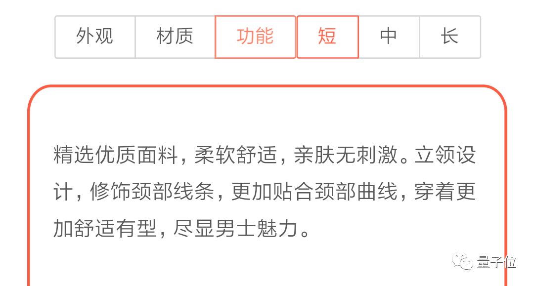 就可以生成一段商品介绍文案,还能选择文案的长度、商品强调的卖点,生成各种不同的文案: