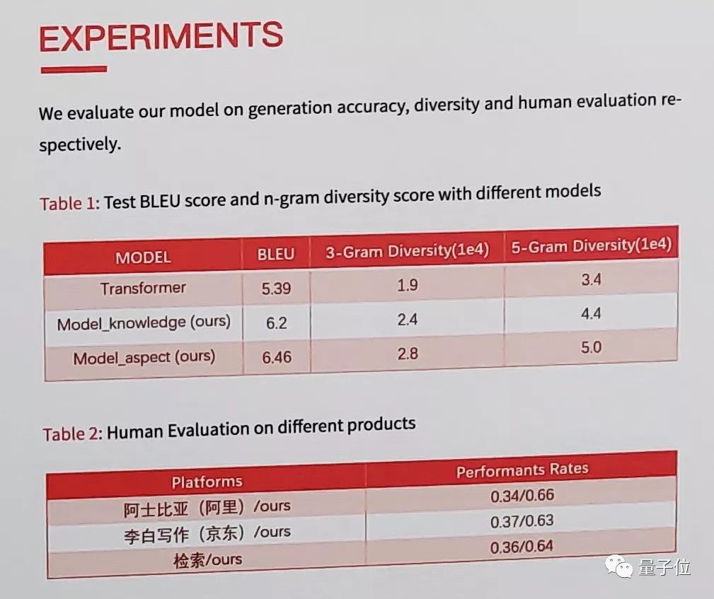 该项目的两个模型,BLEU得分分别达到了6.2分和6.46分,相比阿里京东的两款竞品,表现分数更高。