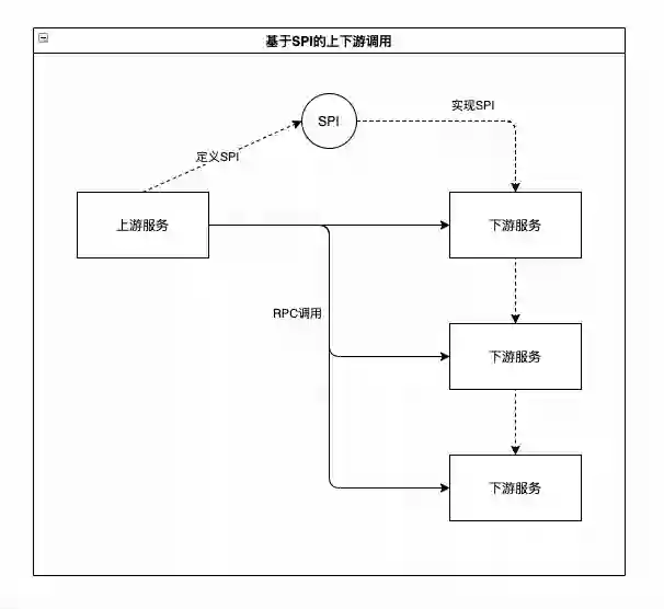 一种更合理的方案是依赖倒置:由上游服务定义SPI,下游服务实现SPI,这样,上游服务终于有机会沉淀出自身的接口和数据标准,不再需要适配各个下游服务的接口,而是由下游服务的开发者按照接口文档来做实现。但这种设计仍然无法解决运行时上游服务仍然依赖下游服务的问题,下游服务的可用性、一致性、幂等性能力会直接影响上游服务的相关指标及实现方式,需要上下游服务开发者一起对齐方案,在出问题时一起解