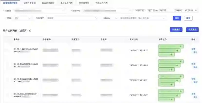 7. 以OpenAPI的形式开放了事件查询、事件重投等运维态的功能,方便被其他系统集成。