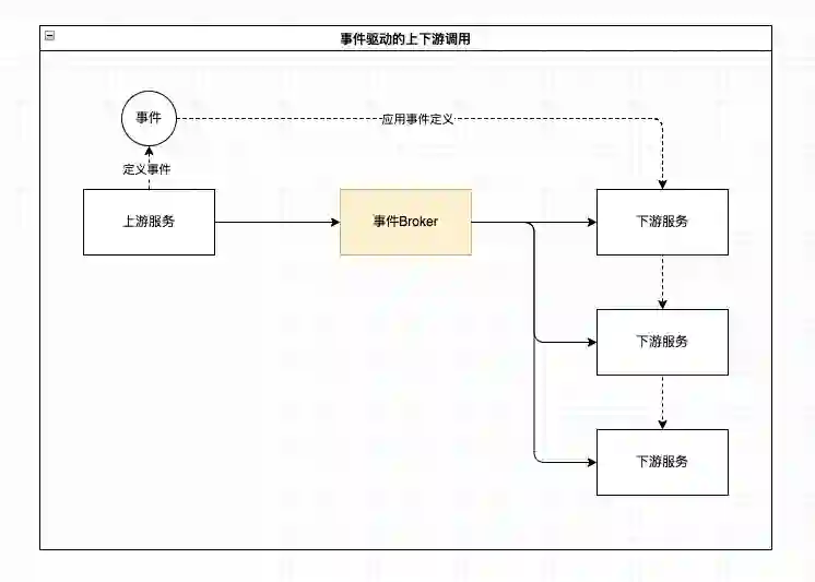 使用事件驱动设计可以实现契约定义和运行时的全面解耦:上游服务可以沉淀自己的事件契约,在运行时无论是上游服务还是下游服务都只依赖事件Broker,下游服务的可用性和一致性等问题由事件Broker来保障。