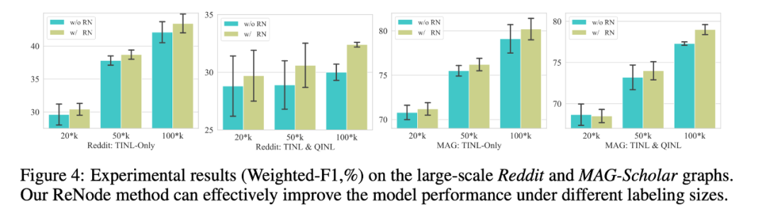 在两个大规模的图数据中展开实验:社交网络 Reddit 以及引用网络 MAG-Scholar(千万节点),这里我们同样设定了只有拓扑不均衡的场景,已经拓扑不均衡和数量不均衡的综合场景。结果验证了我们的方法对于超大图上的拓扑不均衡问题的解决能力。