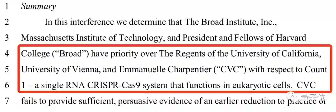判决书中表示,争论的焦点在于“谁先发明了CRISPR-Cas9系统中在真核细胞应用中的单向导RNA”。