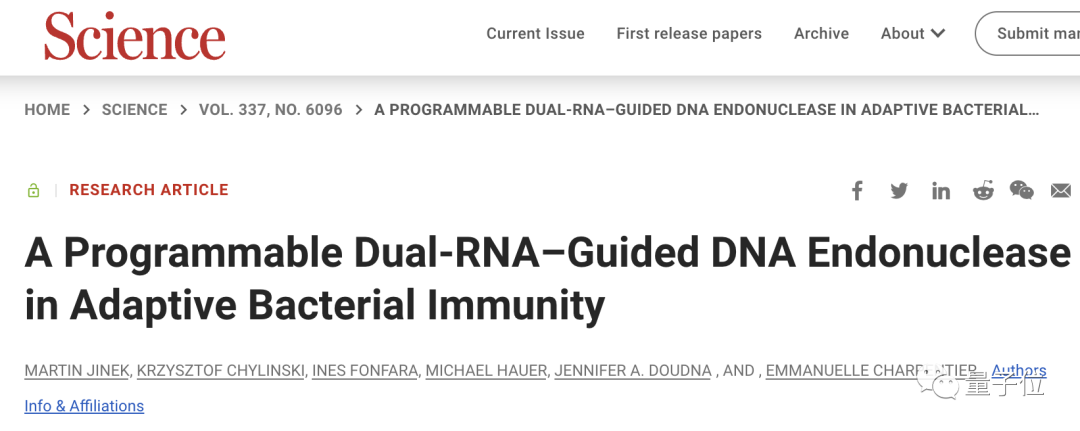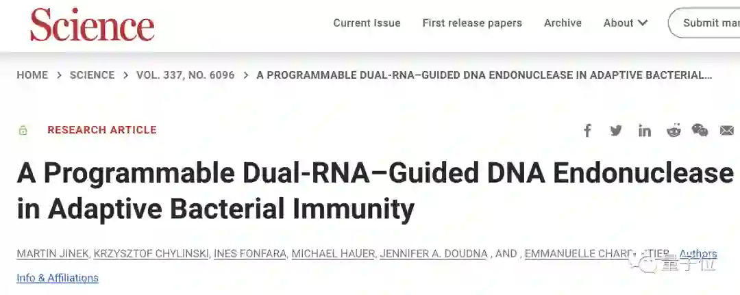 于是在2012年,Charpentier和Doudna便将CRISPR-Cas9的研究成果在Science上公诸于众。
