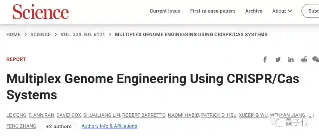 就在这时,张锋所带领的团队于2013年同样在Science上发表论文,并宣告: