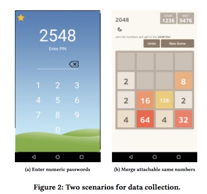 滑动手势在第二阶段收集。我们修改了一个名为2048的流行益智游戏,如图2(b)所示。