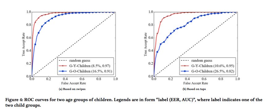 iCare能够记录像手指按压的表面积、手指施加的压力和滑动长度等度量数据。研究人员分别从一群3至11岁的儿童(共17人)和一群22至60岁的成年人(共14人)那里收集数据。其测试的准确率达到了84%,8次滑动之后,准确率可达到97%。
